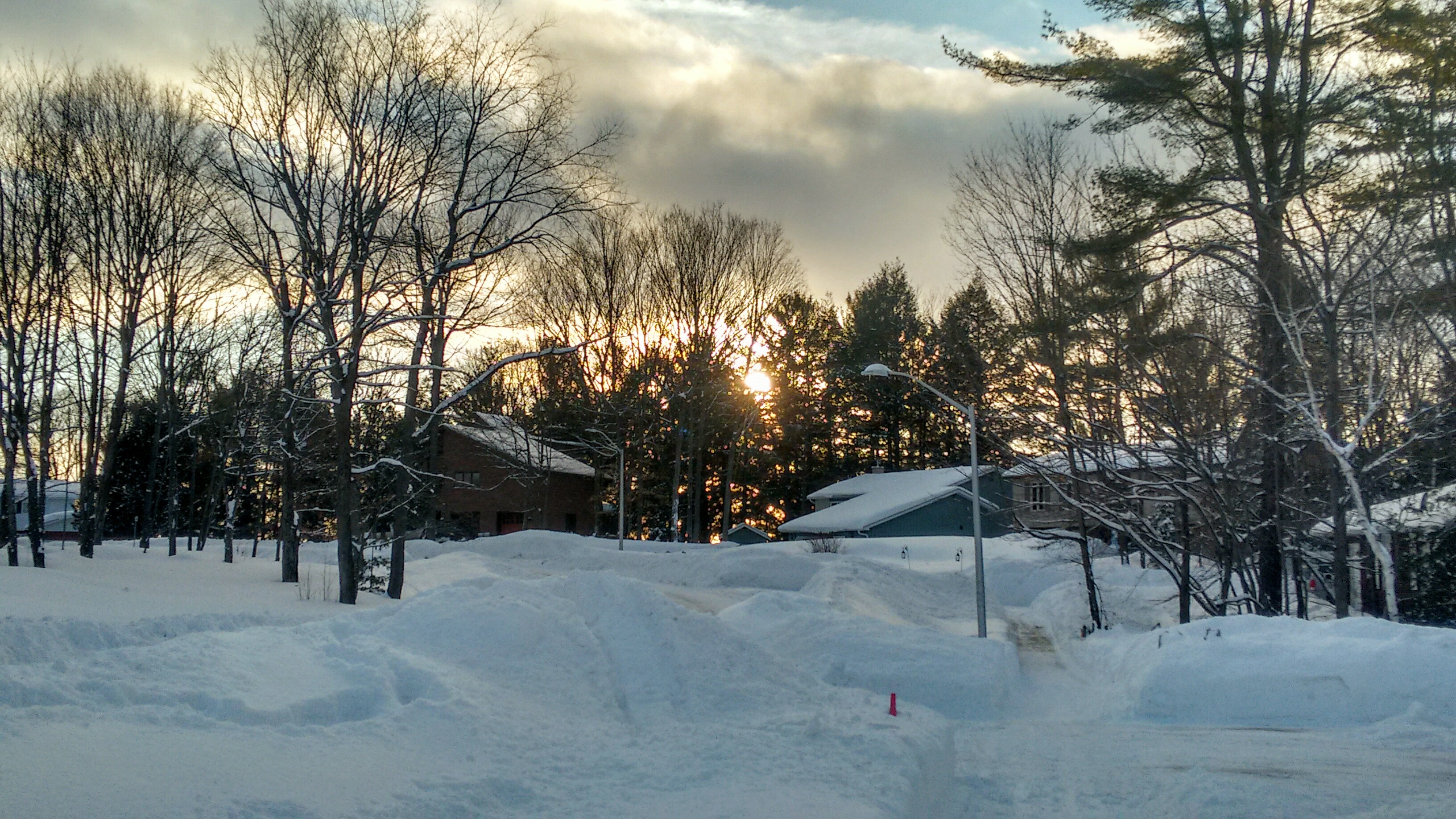 Our house is at the middle of the street but also at the peak of a hill. It’s a sand-bank actually; an ancient sand-bar called the Iroquois Ridge that used to be under the water of a huge lake. If you dig in our garden under the top-soil it’s just reddish sand down so very deep. Oh, and garbage and construction debris; because humans.